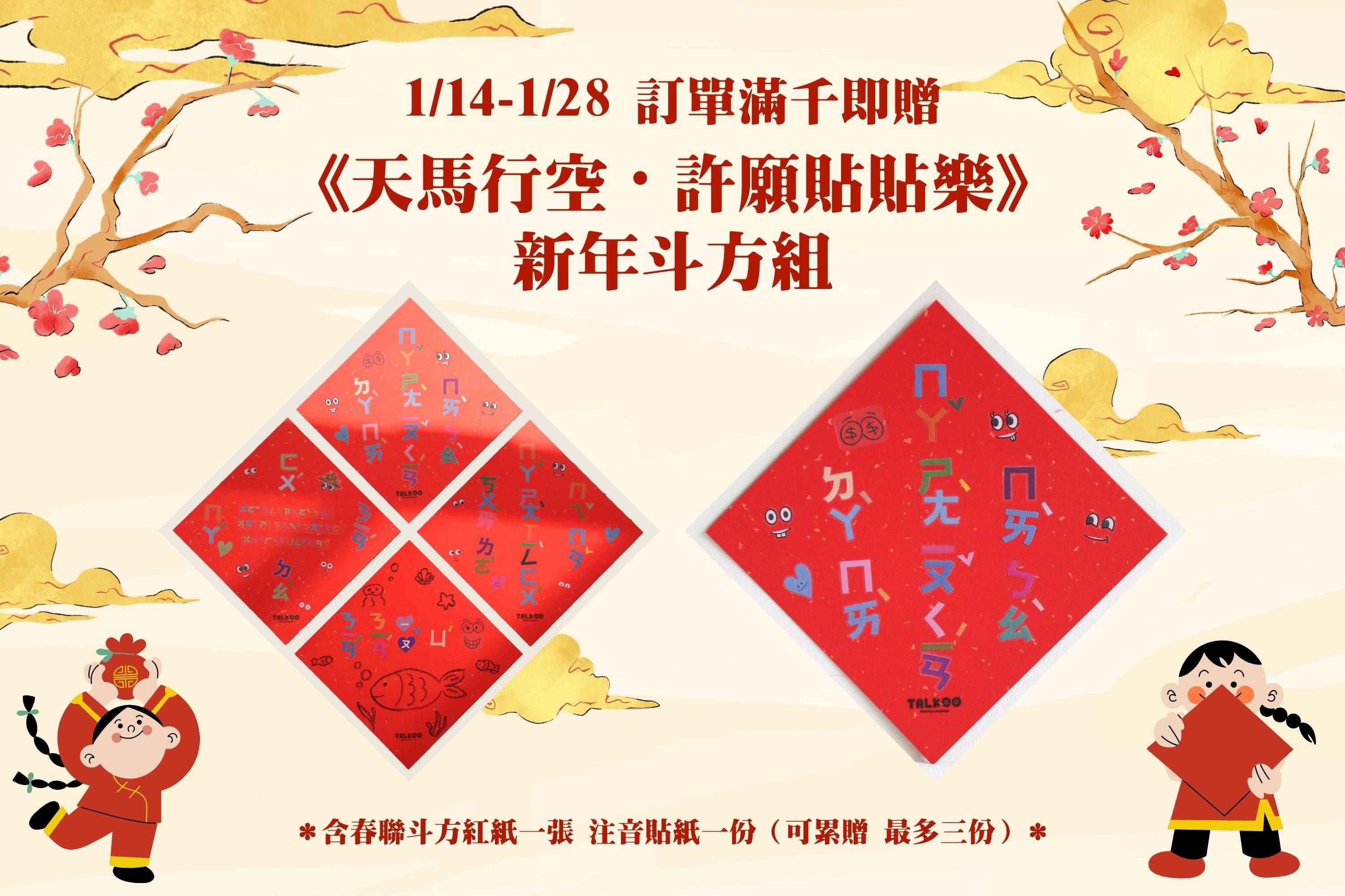 即贈「新年斗方紙 + 獨家注音許願貼紙組」乙份 價值480元!