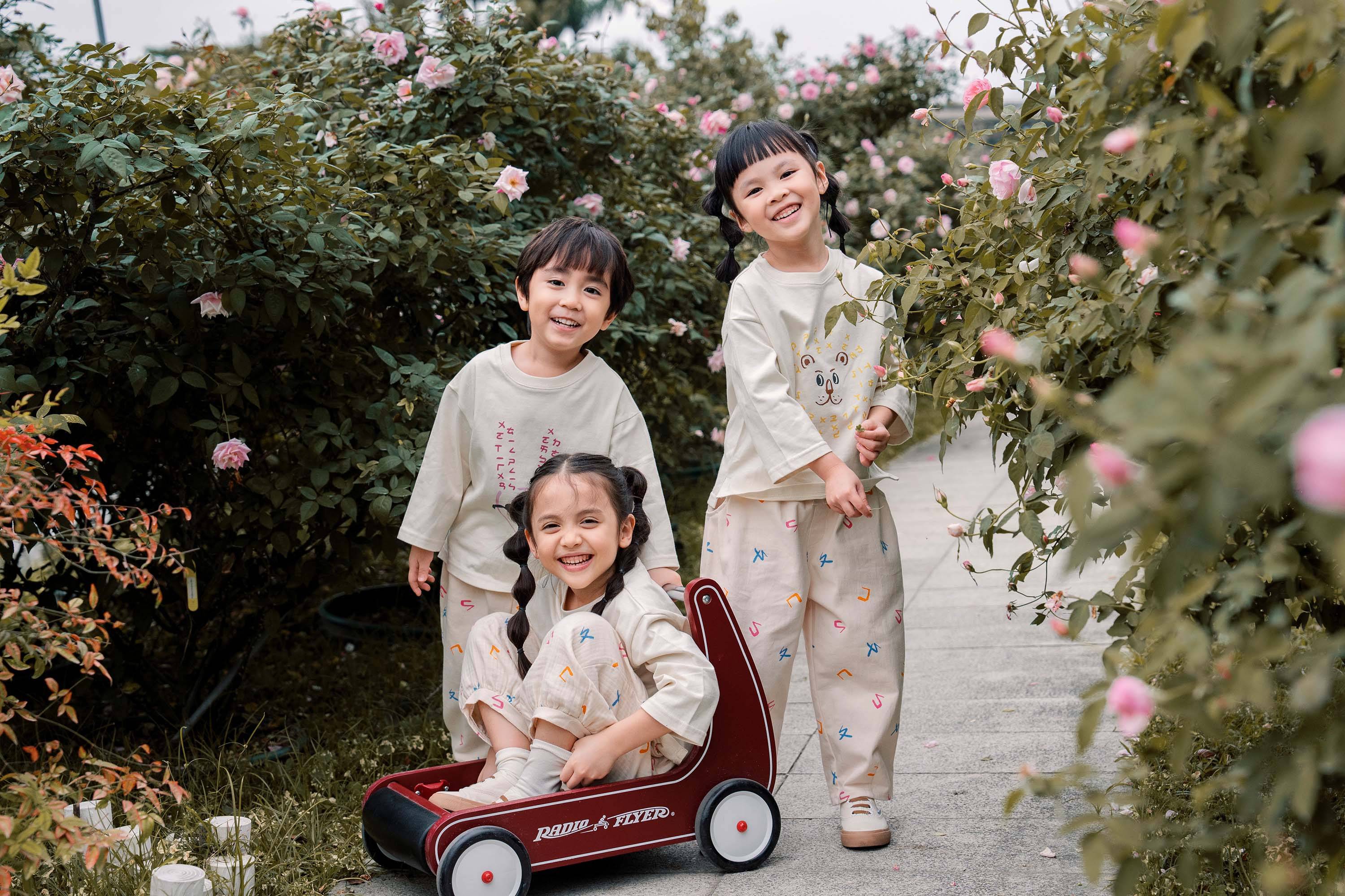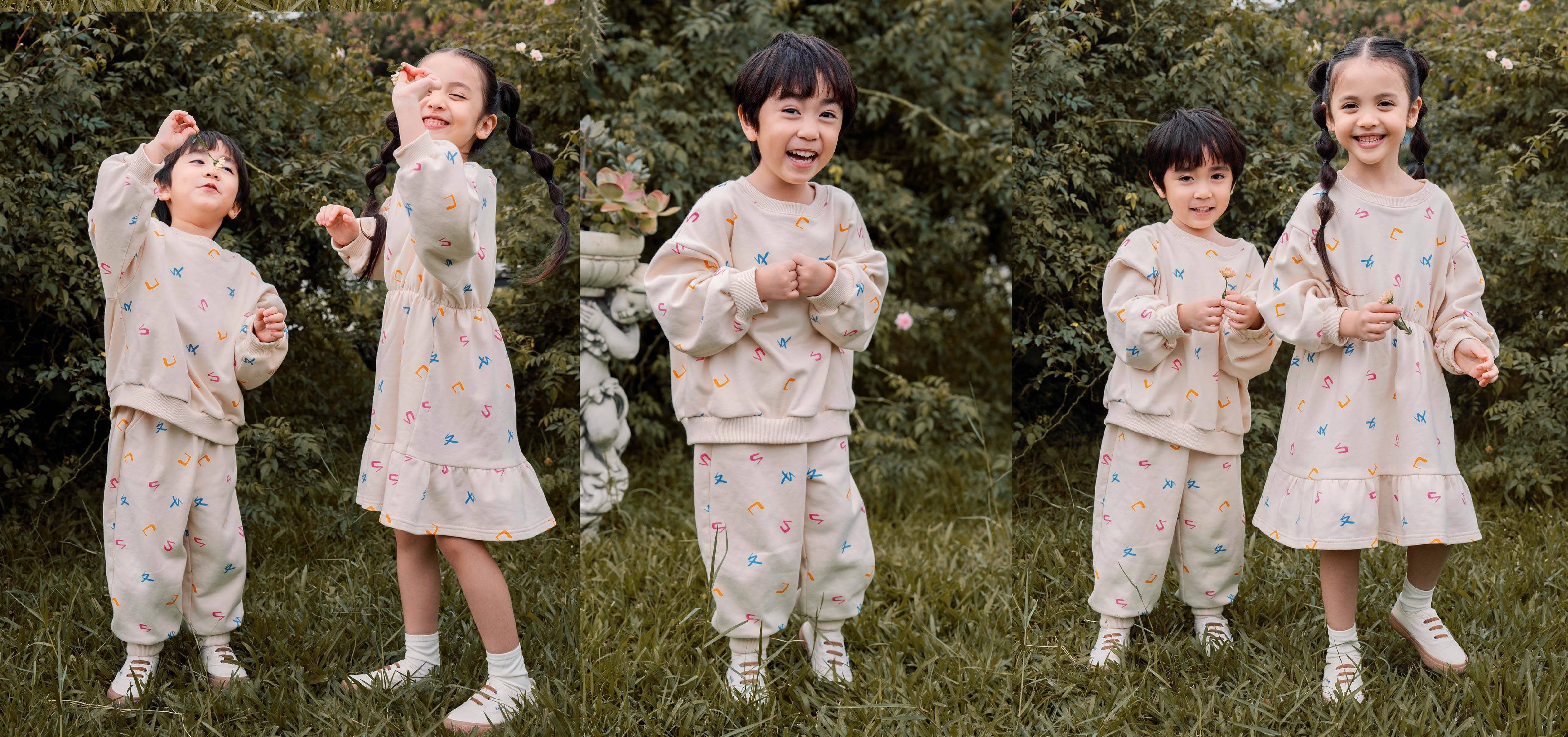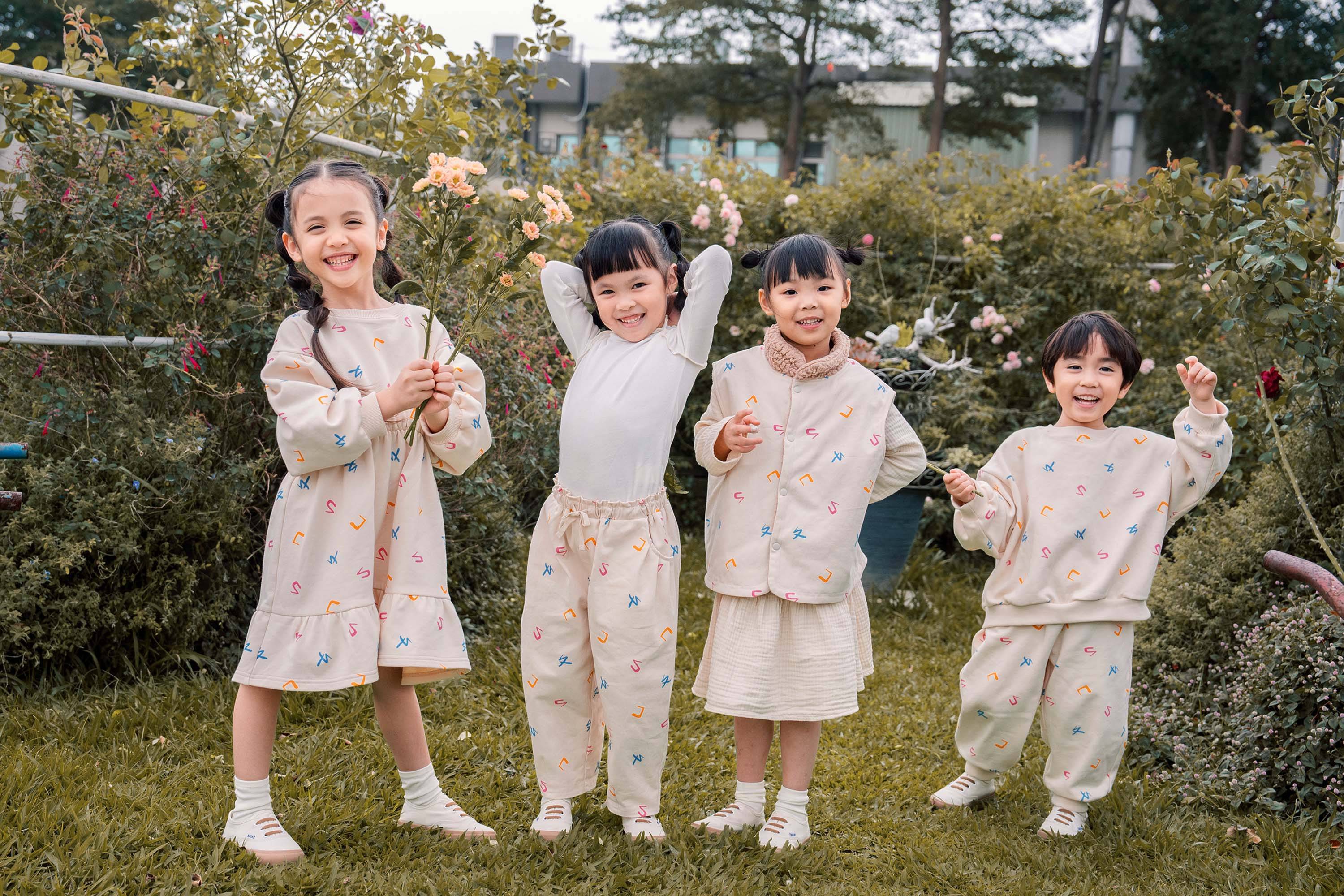 以童趣且柔和的彩色點綴在溫暖的米白色布料上