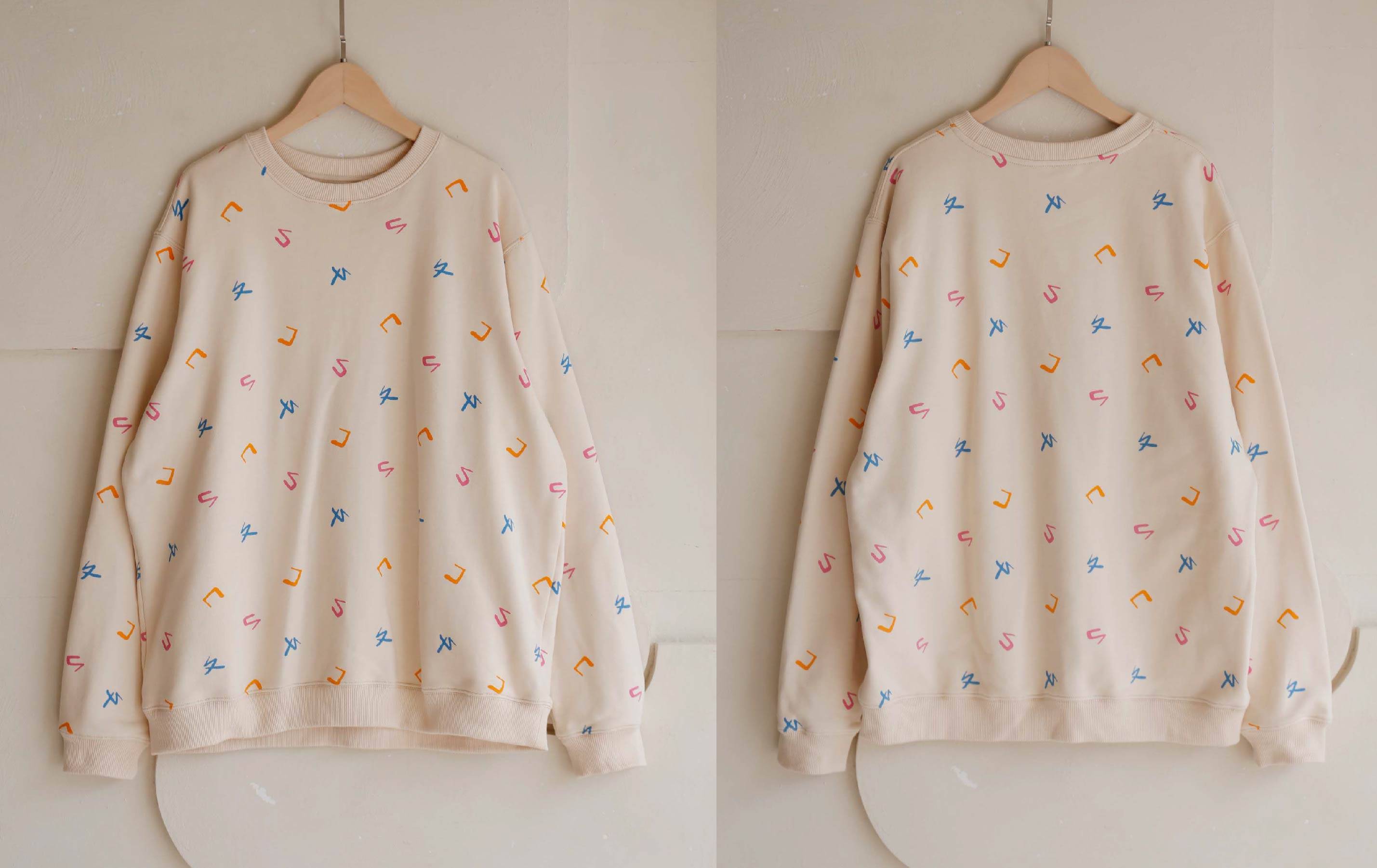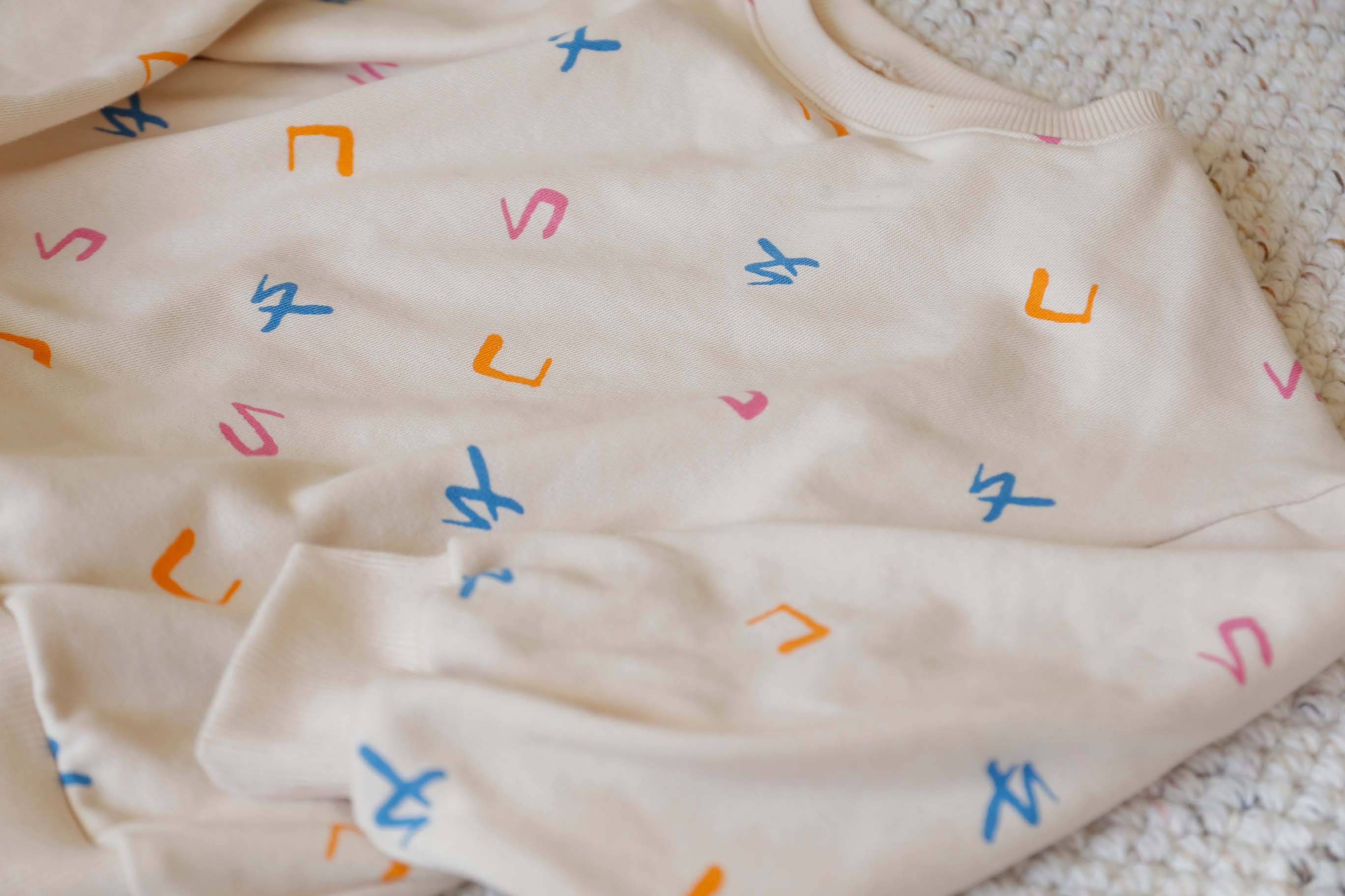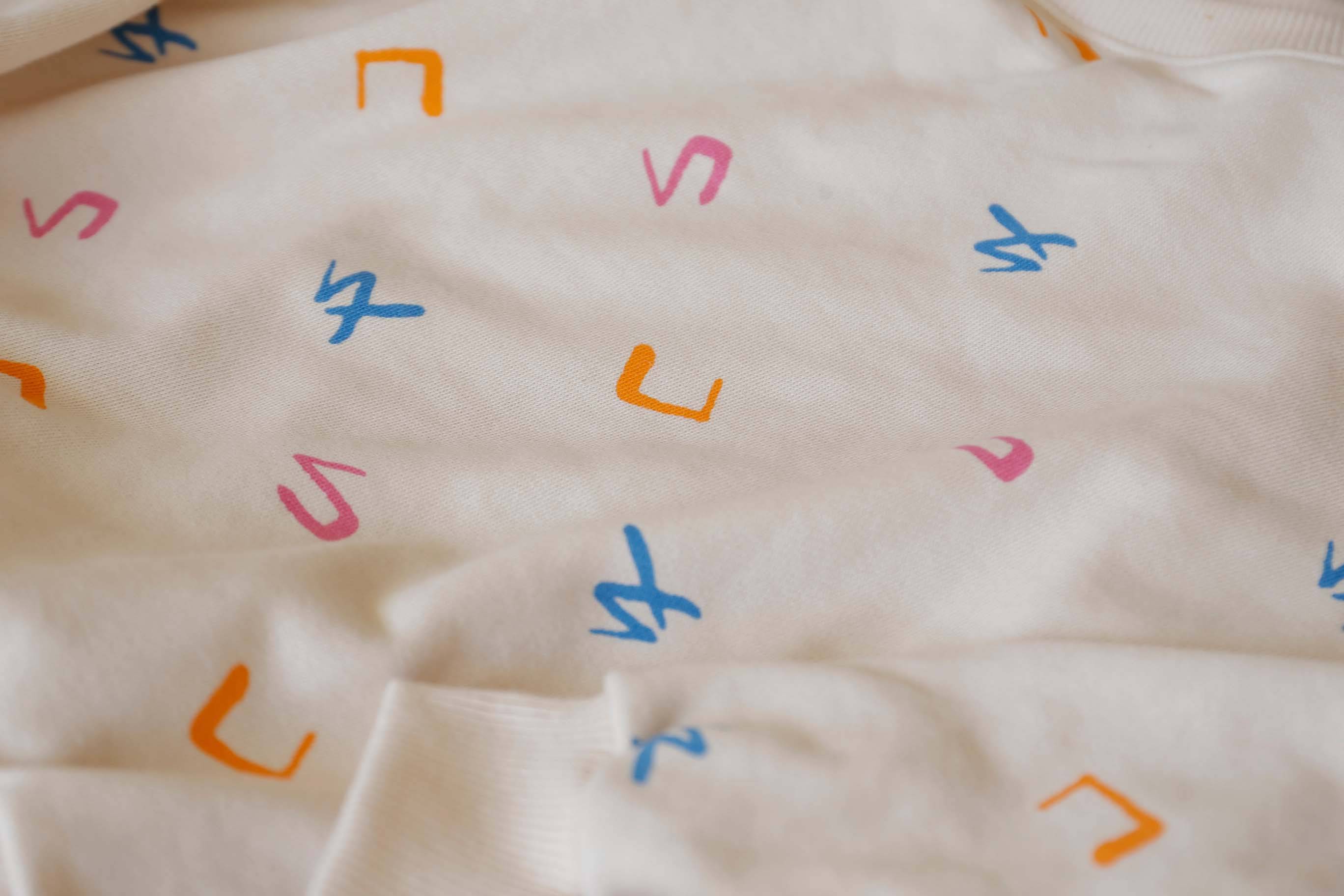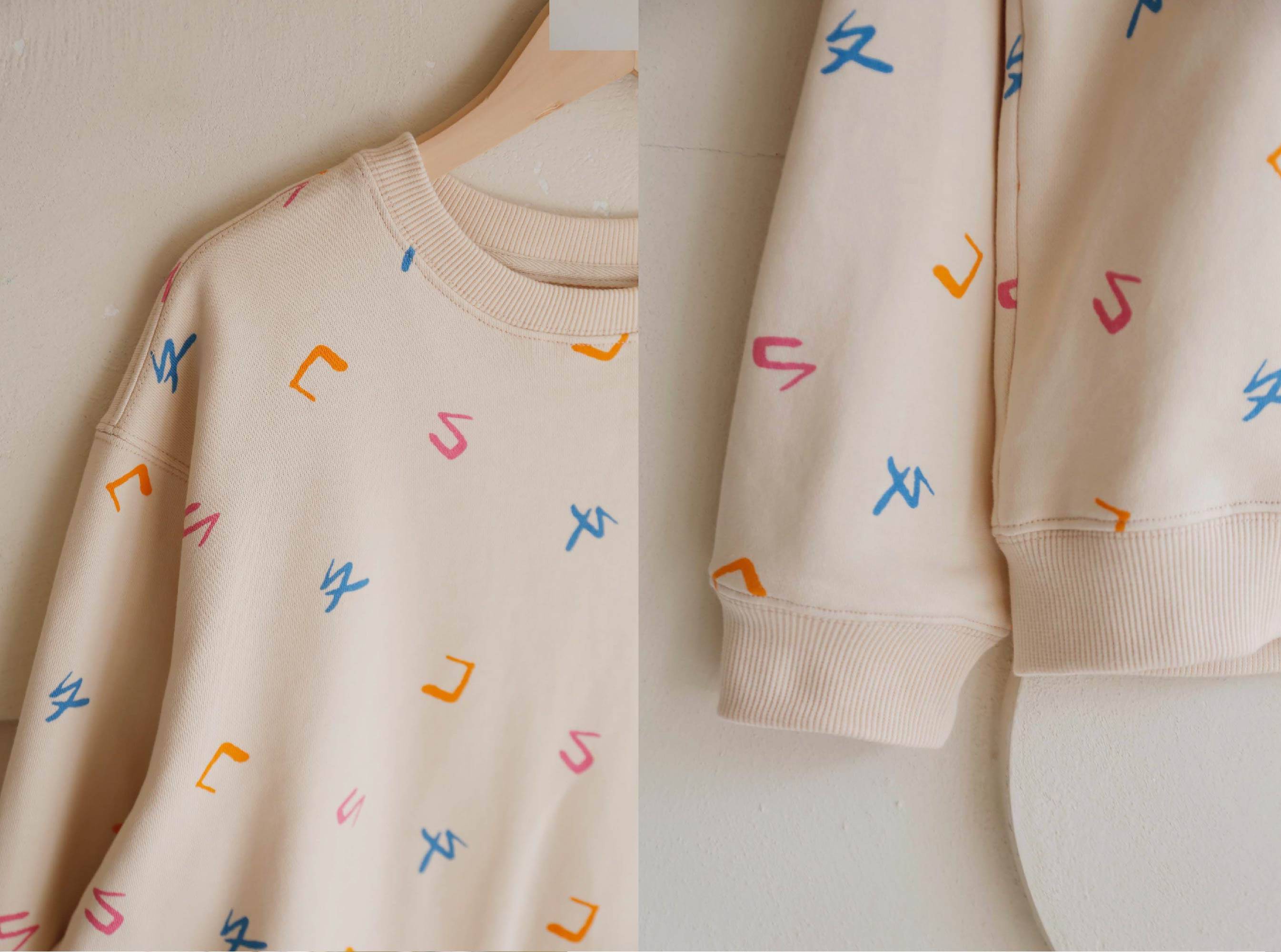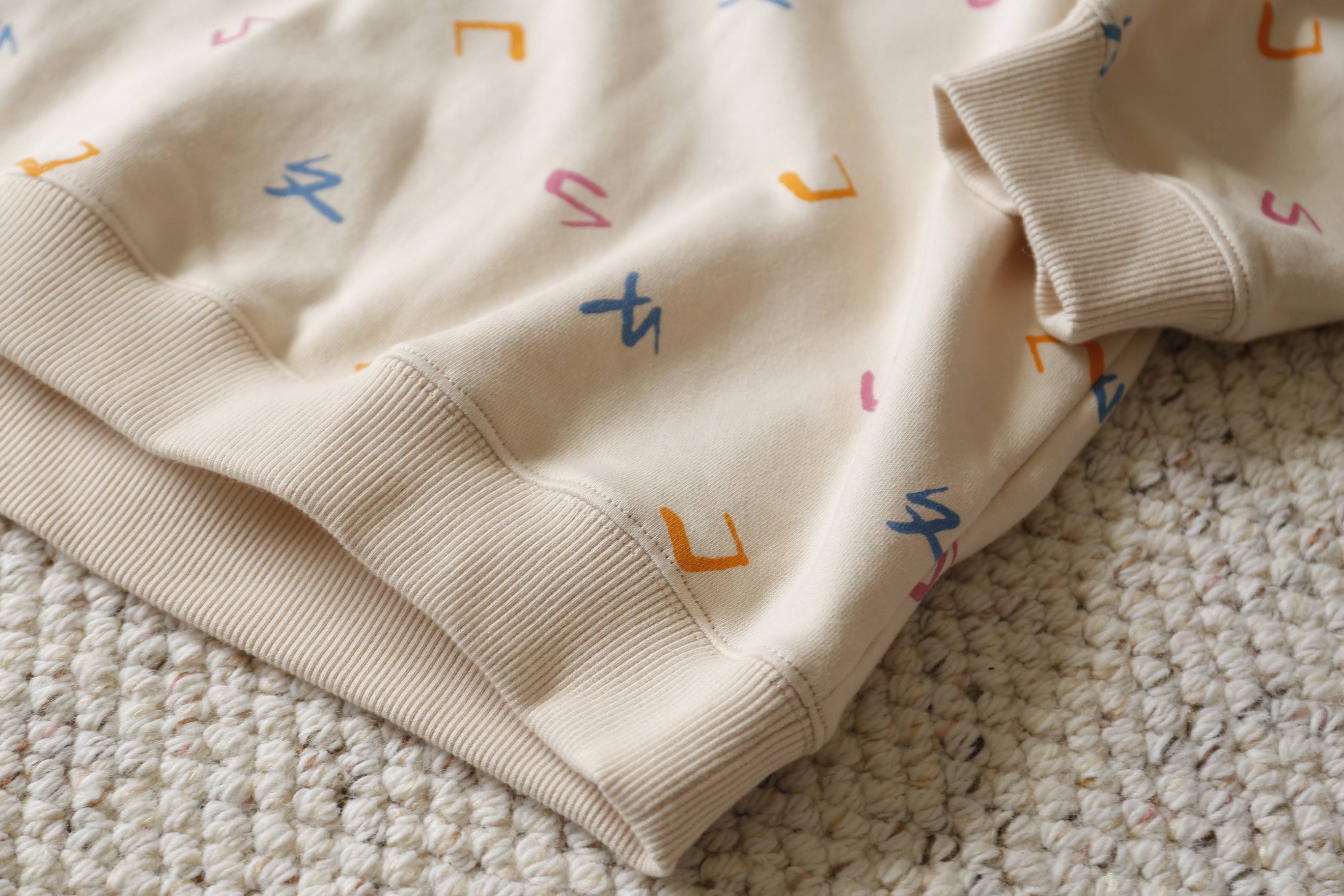 以童趣且柔和的彩色點綴在溫暖的米白色布料上
