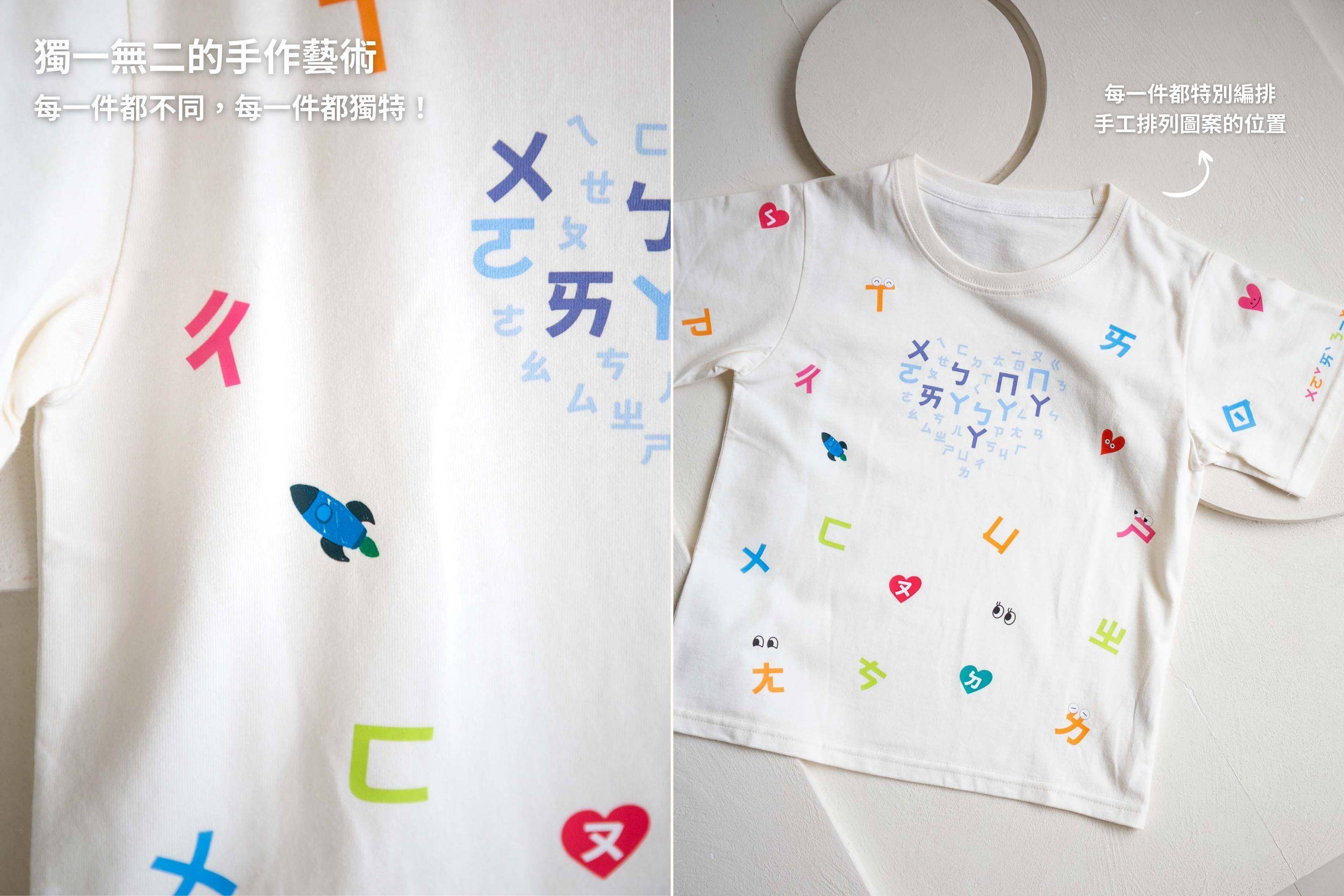 手工排列注音與愛心的位置,每件都不同,每一件都獨特